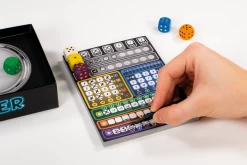 Tactisch dobbelspel voor het hele gezin. Leuk voor op vakantie, of een spelletje tussendoor! Dobbel en vul steeds één van je dobbelstenen in de bijbehorende categorie in. Elke categorie levert op een andere manier punten op. Kies slim en let goed op de overgebleven dobbelstenen. De andere spelers mogen echter kiezen uit de resterende dobbelstenen met een lager resultaat. Razend spannend tot het einde! In dit dobbelspel zijn alle spelers voortdurend bezig. Daardoor is het tot het einde razend spannend!