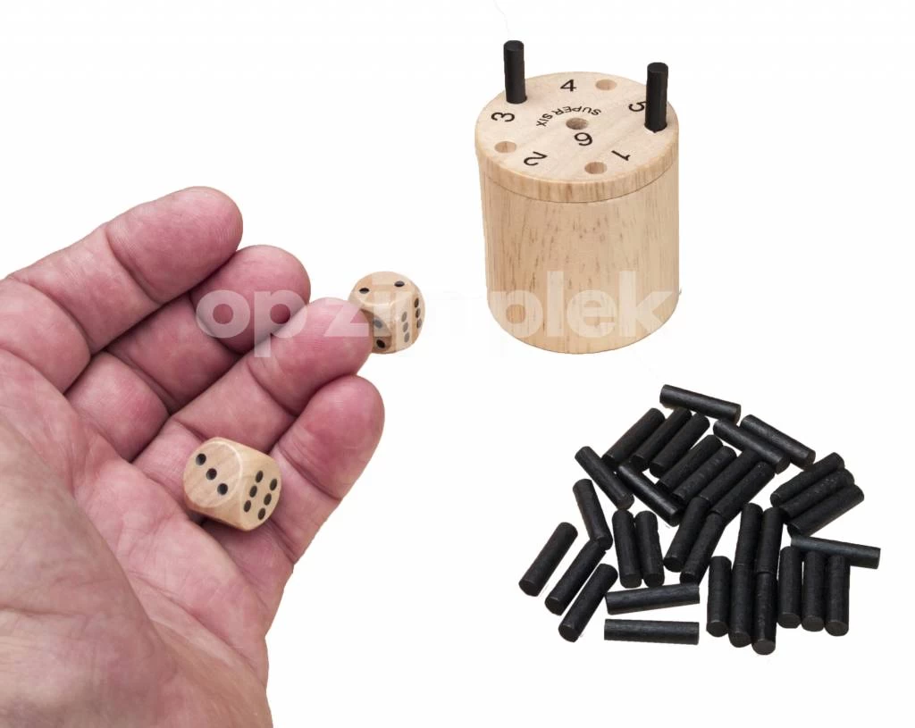Gewoon om tussendoor te spelen of gezellig in een bar of op een terras. “Super-Six Travel” is een handig meeneemformaat dobbelspel voor volwassenen en kinderen die uitdaging verlangen. Dobbelspellen helpen ook bij vergroten van rekenvaardigheden.
