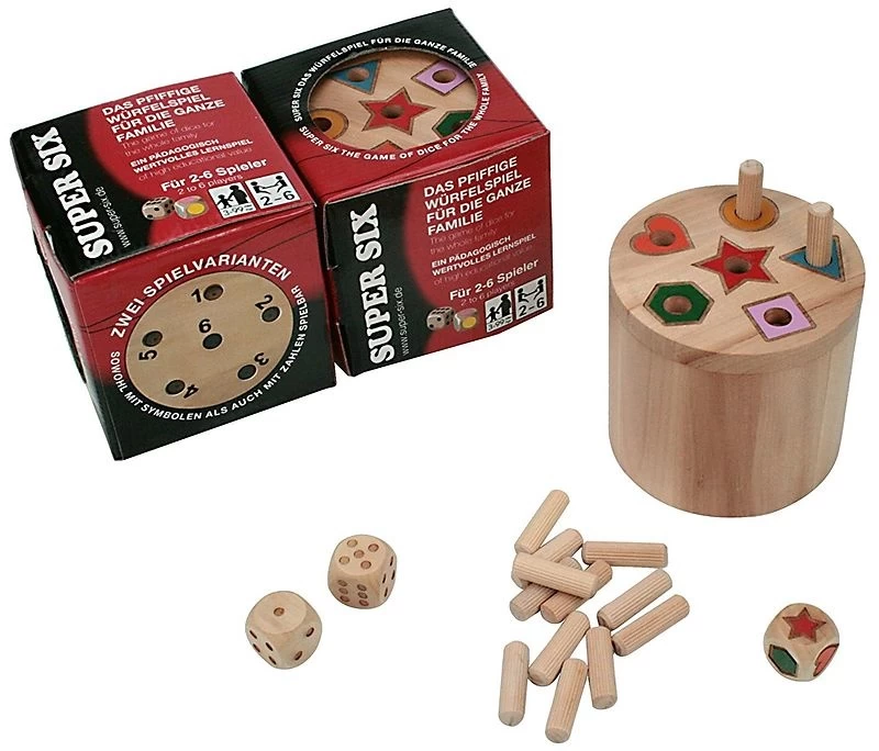 Super-six is een eenvoudig en kortdurend dobbelspel voor de hele familie.