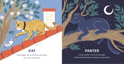 De trouwe hond en de grote wolf, de slinkse kat en de felle panter, de stille goudvis en de koppige zalm… Ook huisdieren hebben verre familie. Alleen wonen die vaak in bossen, bergen en zelfs oceanen. Zie jij wat ze gemeen hebben met elkaar? In dit kartonboekje worden huisdieren samen met hun wilde soortgenoten afgebeeld. Korte geestige zinnetjes onder elke afbeelding geven het verschil aan tussen het wilde en het tamme dier, zodat zelfs de allerkleinsten het begrijpen. Echt een leuk boekje om de natuurlijke gelijkenissen tussen dieren te leren kennen en te ontdekken dat er heel veel overeenkomsten zijn.
