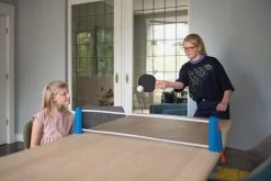 Het net past op de meeste tafels en heeft een totale lengte van 170 cm. Klik vast en spelen maar!