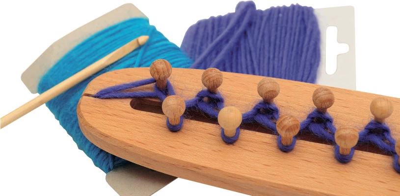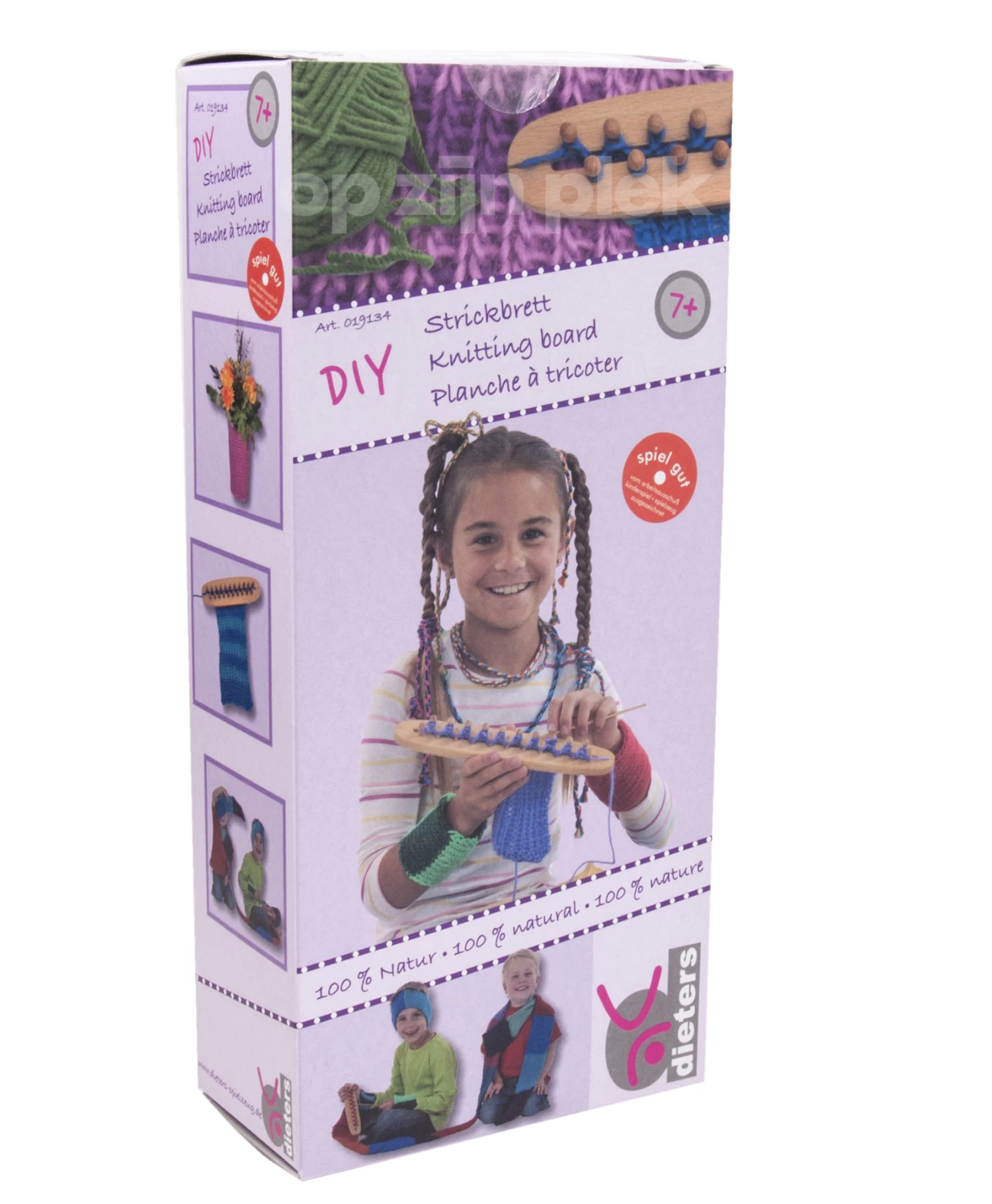 Met naalden breien is soms best lastig. Jonge kinderen kunnen breien met de breiplank.