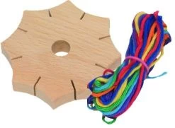 Een knoopster is voor veel kinderen ideaal handwerkspeelgoed. De knoopster heeft een fijn formaat om vast te houden en het maken van een koord is leuk om te doen maar ook rustgevend. Het resultaat nodigt uit om verder te knutselen of je mooie koord te dragen om je arm of hals. Of wellicht maak je er een sleutelhanger, prachtige veters voor je gympen of boekenlegger van.