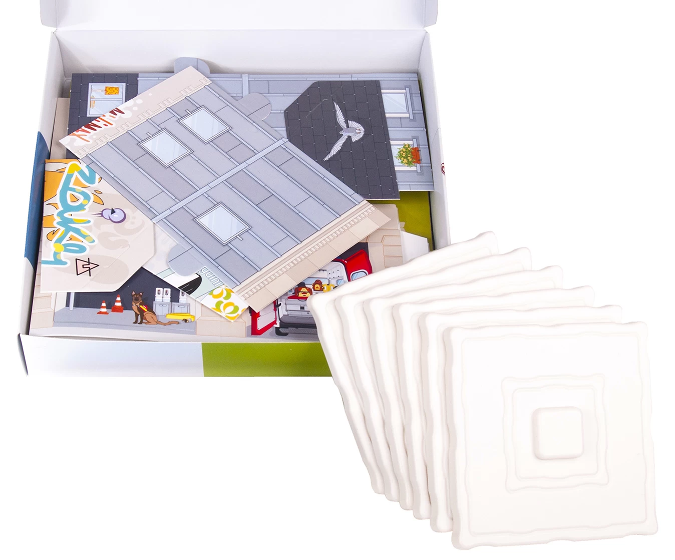 Fabulabox is een makkelijk systeem om een decor te bouwen voor al je speelgoed. Gemaakt van superstevig FSC karton dat je steeds weer kunt uitvouwen en eindeloos kunt combineren met al je speelgoed. Fabulabox is ook compatibel met Lego en Duplo.