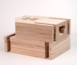 Deze set bevat 19 gevels of muurdelen met gedetailleerde ramen en deuren van 12 mm dik berken multiplex van hoge kwaliteit.