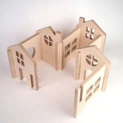 Deze set bevat 8 gevels of muurdelen met gedetailleerde ramen en deuren van 12 mm dik berken multiplex van hoge kwaliteit.