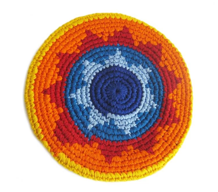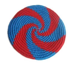 De frisbees zijn met de hand gemaakt door vrouwen uit Guatemala. Fair Trade ook en uniek waardoor de maten soms verschillen van elkaar. De vrouwen hebben een extra inkomen om in hun primaire levensbehoefte te kunnen voorzien.