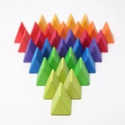 Ontdek de driehoek: van kleine tot grote driehoek, van zeshoek tot ster – welke andere geometrische vormen kunnen met de driehoeken worden gemaakt? Eén vorm ( de driehoek) vormt de basis voor zoveel andere vormen! Veel plezier met het verkennen van de symmetrie van de driehoek. Je kunt ook dieren maken en bouwen, en natuurlijk structuren voor het spelen met poppen en auto’s of allerlei andere vormen.