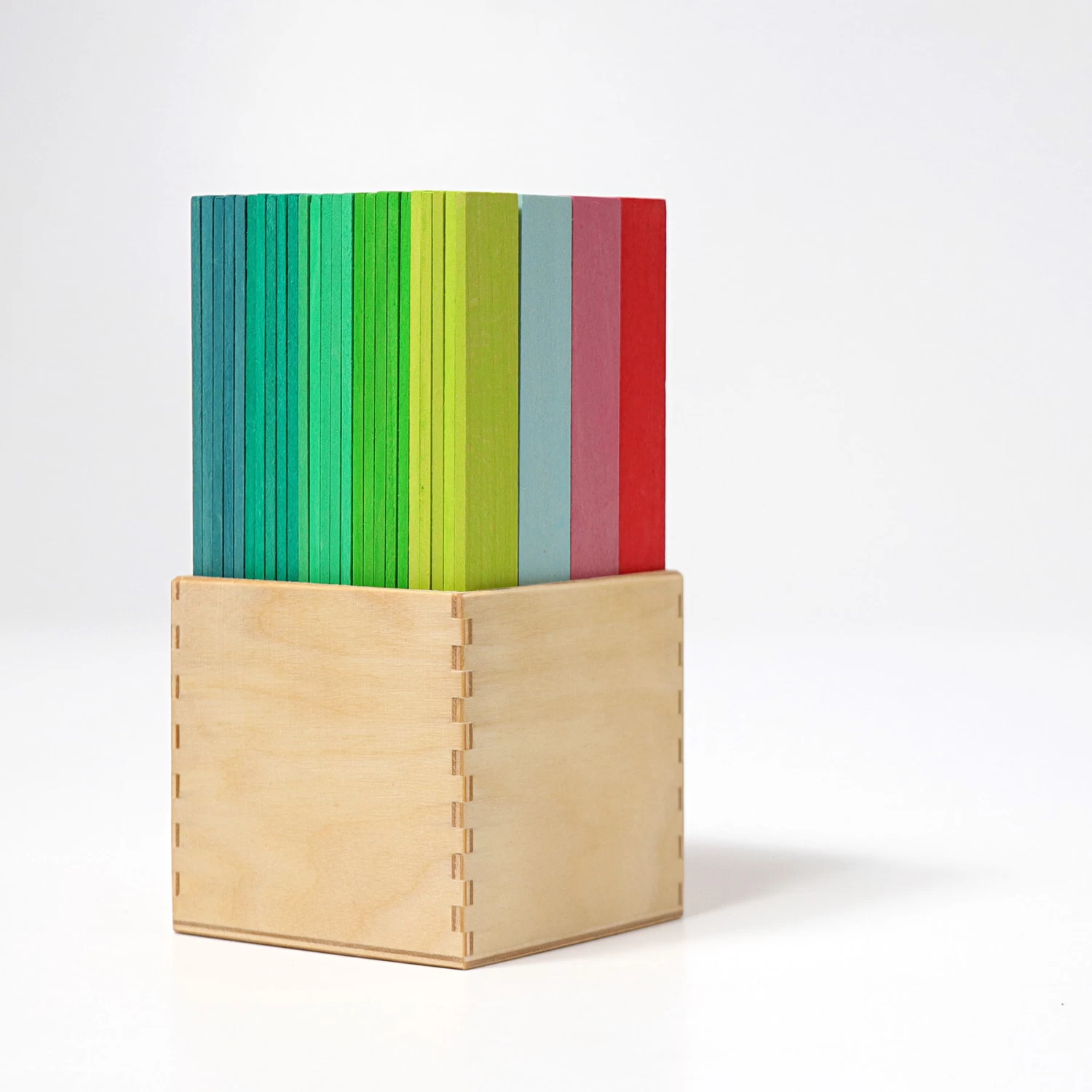 Inhoud: 100 gekleurde houten plankjes geleverd in houten kistje