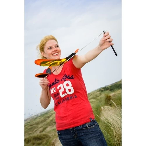De Air glider 40 Fire is een zeer goede kwaliteit zweefvliegtuig aangedreven door een katapult of door het werpen met de hand. Prachtig uitdagend speelgoed voor op open plekken. Een vlieger die je afschiet als een katapult.