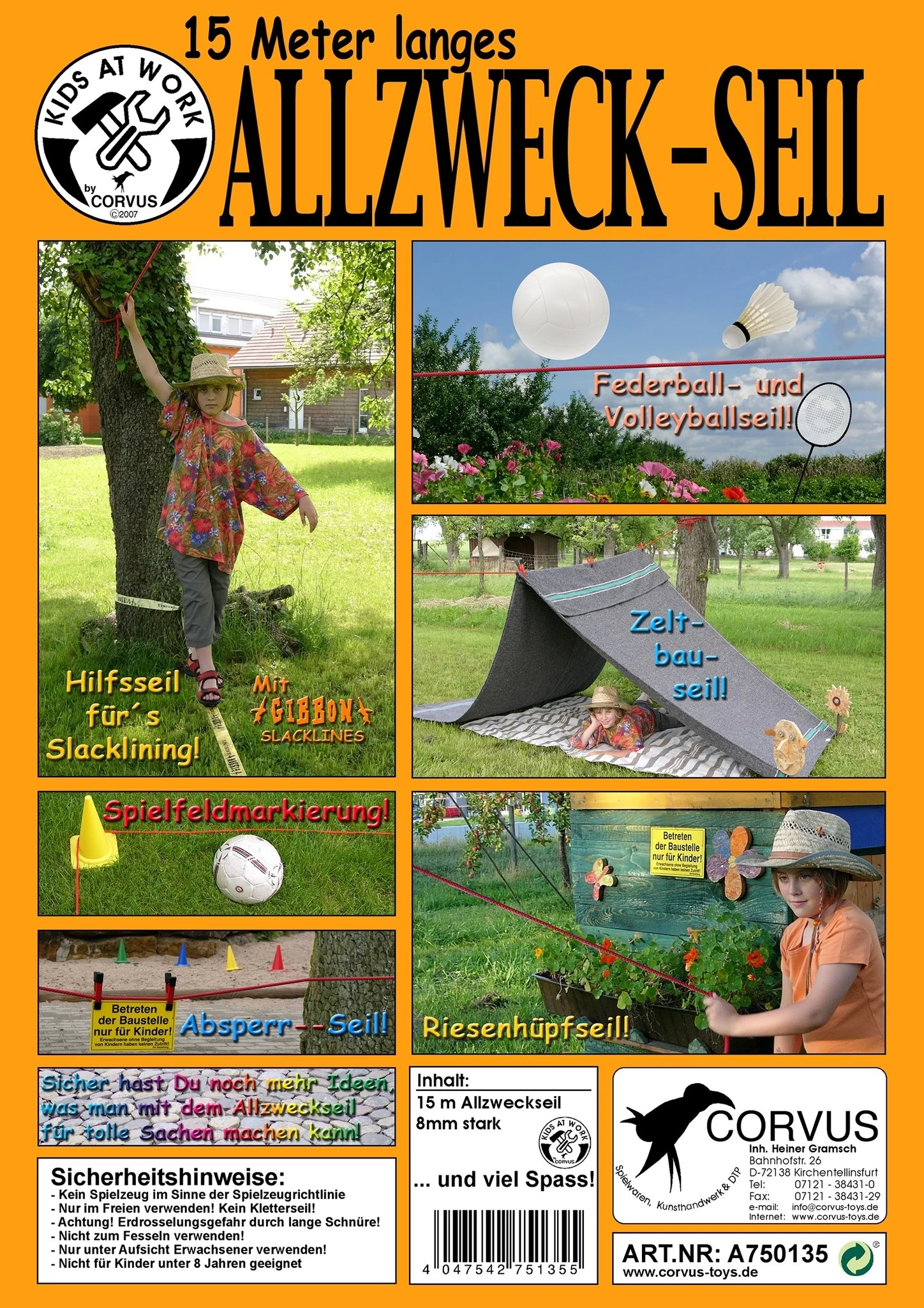Dit 15 meter lange touw kan in dienst staan van wat je maar wilt. Je hut bouwen, een tent maken, als spelafzetting, als springtouw, of als hulpmiddel bij het slacklinen. De mogelijkheden zijn eindeloos!