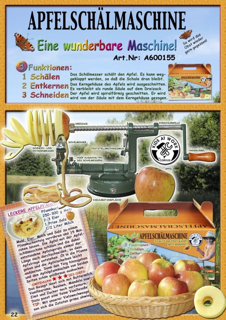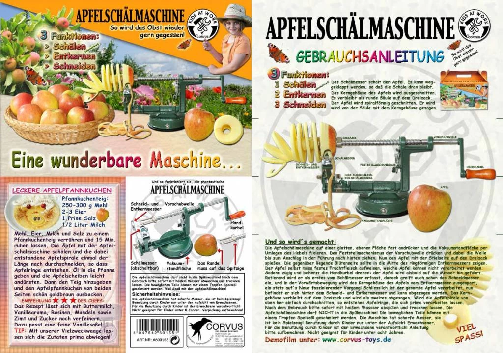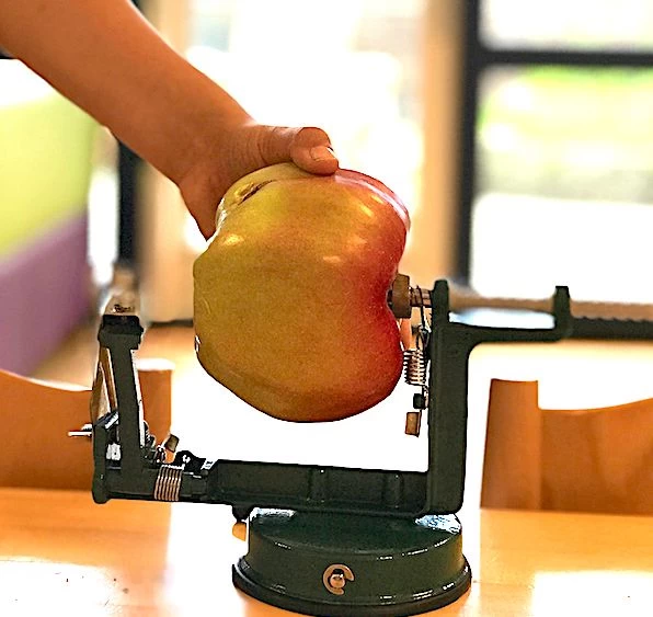 Fruit eten wordt een groot feest met deze Kids at Work appelschilmachine!