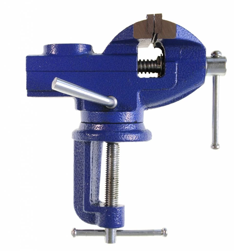 De bankschroef kun je klemmen om een (tafel)blad of werkbank van 45mm dikte. De klemdikte is 60 mm en het geheel is draaibaar te stellen.