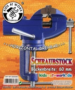Een bankschroef voor de echte smid, want je klemt niet alleen je werkstukken tussen deze bankschroef, maar je kunt ook stukken metaal of smeedijzer vormen op het kleine aambeeld. Dus een muntje platslaan met een hamer en er een leuke draai aangeven, kan allemaal met dit stuk gereedschap dat juist voor kinderen is bedoeld.