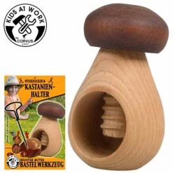 De houder voor kastanjes past perfect in een kinderhand en is ook bruikbaar als notenkraker.