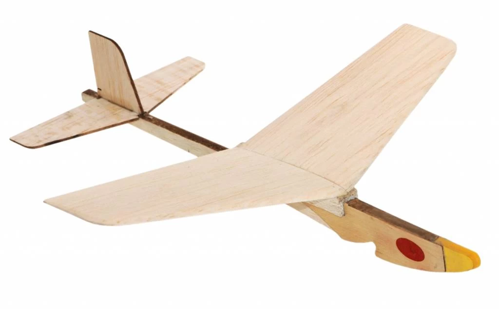 Balsahout is voor vliegtuigjes maken van hout zeer geschikt. Het is licht en flexibel, maar pas op, het kan breken als je ergens tegenaan schiet. Zorg dus voor ruimte en schiet niet op een doel, maar alleen in de vrije ruimte.