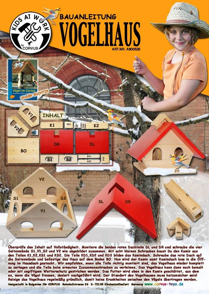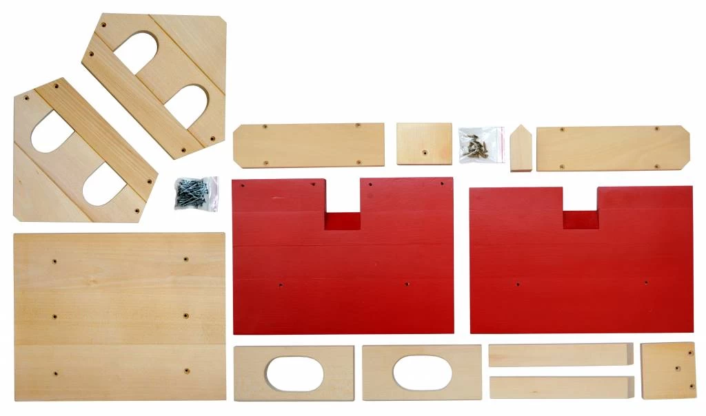 Het vogelvoederhuisje is een bouwpakket wat je eenvoudig in elkaar zet omdat het al is gezaagd. Het dak is gelakt in rood.