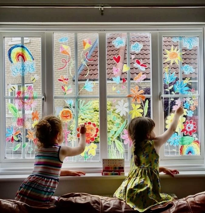 Teken en kleur op de ramen in huis, de BSO of op school. Je veegt het makkelijk weer uit!