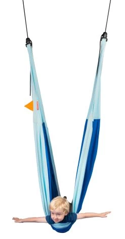 De kinderhangmat Dolphy Max is gemaakt van 2 kleuren blauw biologisch GOTS Katoen en is geschikt voor de hele familie. Met gemak kun je er samen met je kind in liggen. De hangmat is uitgerust met een gepatenteerd veilig ophangsysteem. Geen kans om tussen gevaarlijke touwen te raken of vingers die ergens tussen kunnen komen.