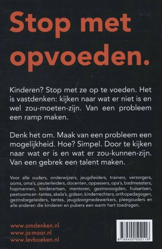 Het boek Omdenken, Lastige kinderen eb jij even geluk is voor alle ouders, onderwijzers, jeugdleiders, trainers, verzorgers, oma’s, peuterleiders, docenten, opa’s, badmeesters, kinderartsen, mentoren, gezinsvoogden, akela’s, kinderrechters, huisartsen, orthopedagogen, gezinsbegeleiders, pleegouders en alle anderen die kinderen en pubers een warm hart toedragen.