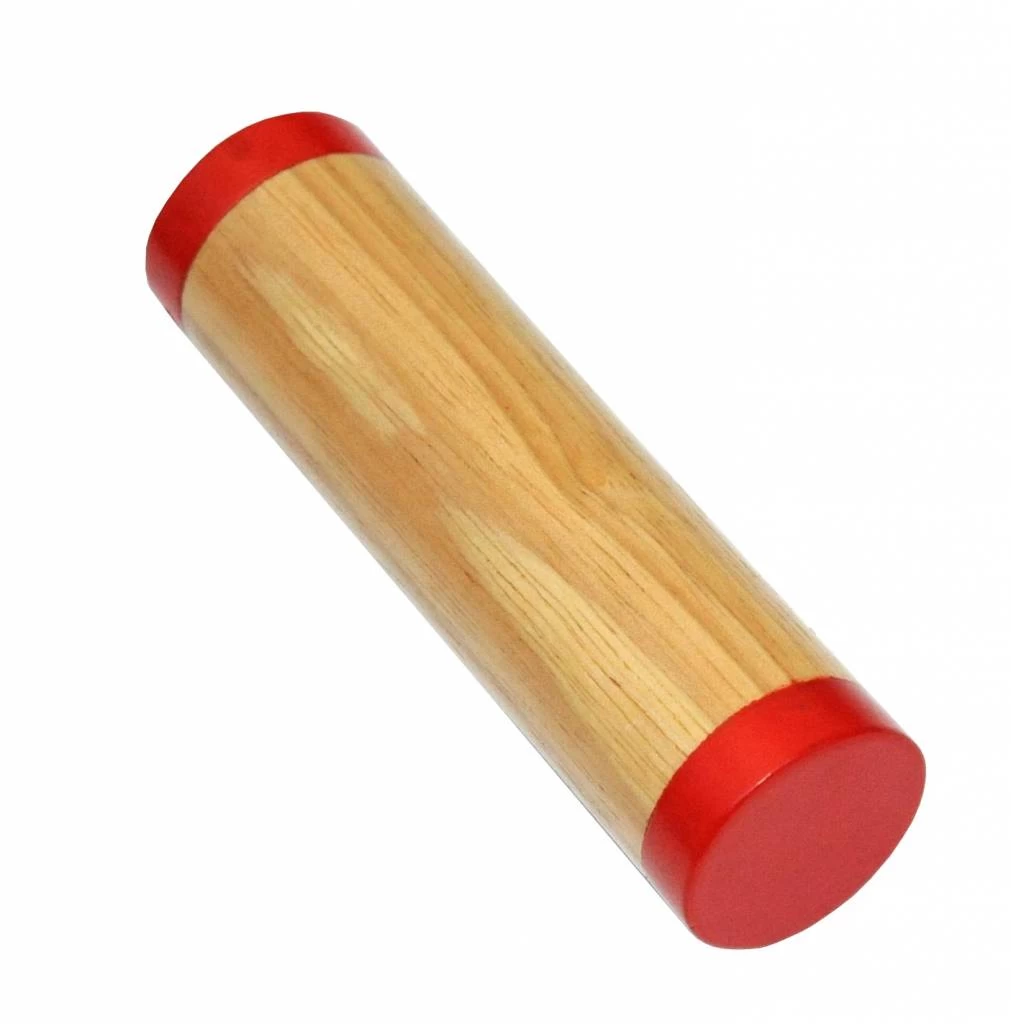 Houten shaker met aan de uiteinden een kleur, rood, oranje, bruin of blauw. De shaker wordt assortie geleverd. Het is dus een verrassing welke kleur je ontvangt.