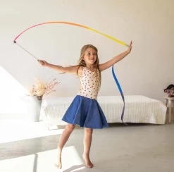 Deze Sarah’s Silks Rainbow zijden Streamer ofwel danslint lijkt wel een toverstok met een glinsterende zijden slinger. Schrijf in de lucht, dans en beweeg, laat glinsteren onder de zon… Dit lint is fantastisch speelgoed voor eindeloos spel!
