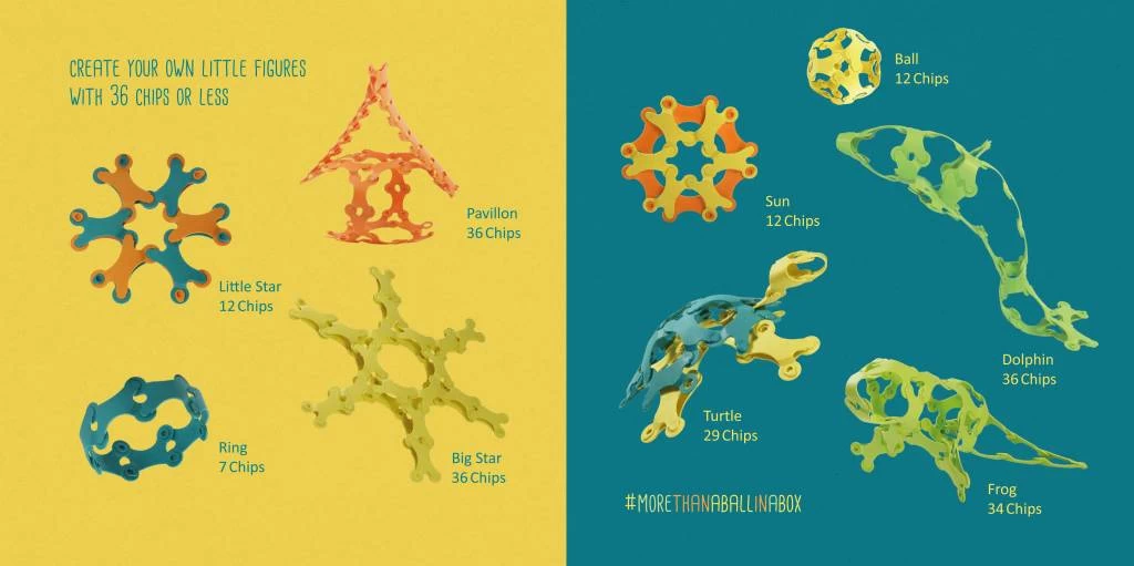 Voor een bal heb je 12, 24, 30, 36 of 60 chips/schijfjes nodig. Een bijzonder project is een bal maken van 240 stukjes. En wat maak je nog meer? Misschien lukt het je om tafeltennisballetjes te maken en een bat of een knikkerbaan?