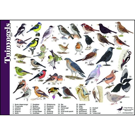 Spot en benoem de vogels in je tuin met deze mooi geïllustreerde herkenningskaart!