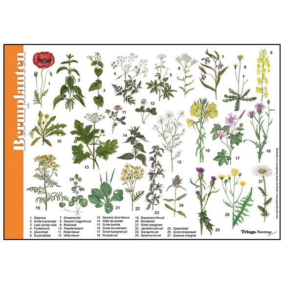 Ook benieuwd welke planten er allemaal groeien in de berm. Soms zit je in de auto, of op de fiets en zie je de meest prachtige bloemen aan de kant van de weg of fietspad. Die berm is een bron van leven, tenminste als we de berm niet steeds plat maaien. Met de kaart bermplanten leer je makkelijk de bermplanten langs wegen en paden op naam te brengen.