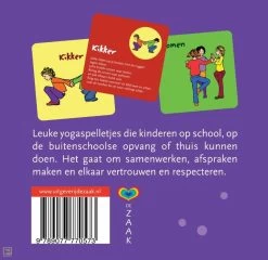 Leuke yogaspelletjes voor kinderen! Door samen yoga te beoefenen, leer je elkaars grenzen af te tasten en elkaar te respecteren. De yogaspelletjes kun je met zijn tweeën of met een groep doen. De kaarten zijn geschikt voor thuis, op school en de buitenschoolse opvang.