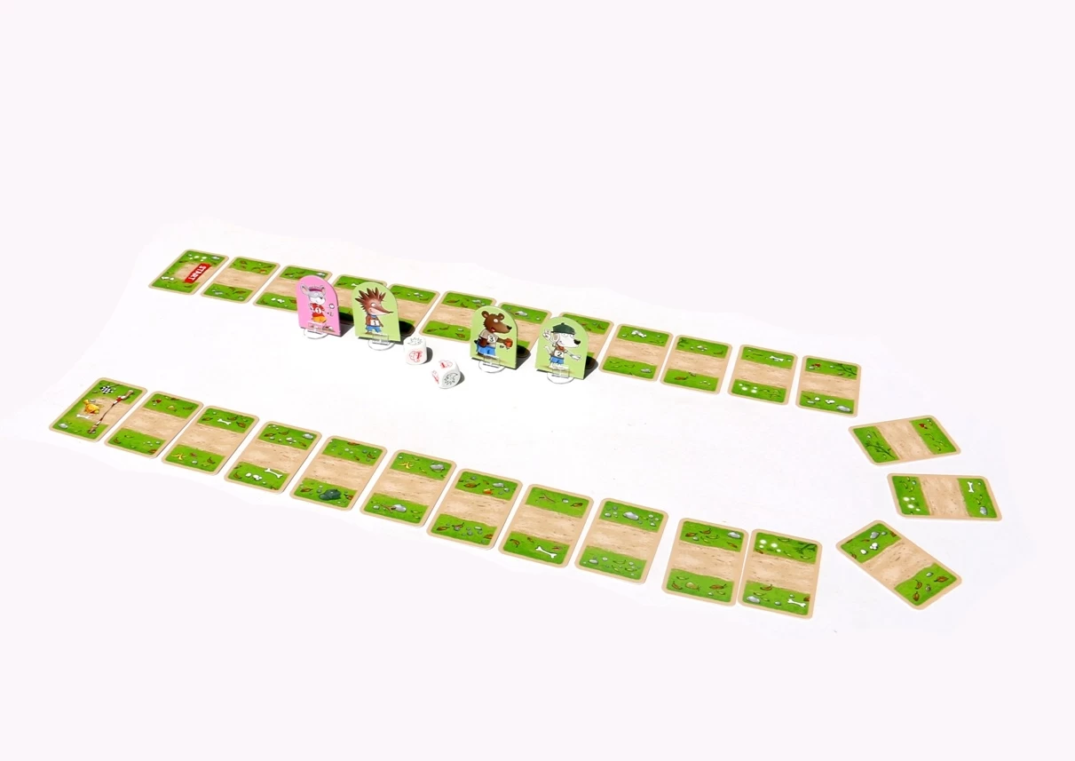 In een een coöperatief spel speel je samen met elkaar tegen het spel in plaats van tegen elkaar. Je wint dus samen of je verliest samen. Wanneer de spelers twee egels gooien, krijgen ze een voordeel om de race mee te beïnvloeden. Wie zal als eerste de finish bereiken? Rudi of het team?